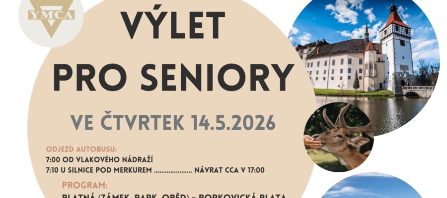 Ve čtvrtek 14. května pořádáme Výlet pro seniory. Pojedeme do Blatné – v plánu je komentovaná prohlídka zámku, procházka po zámeckém parku, společný oběd v restauraci a posezení v zámecké kavárně. Cestou zpět