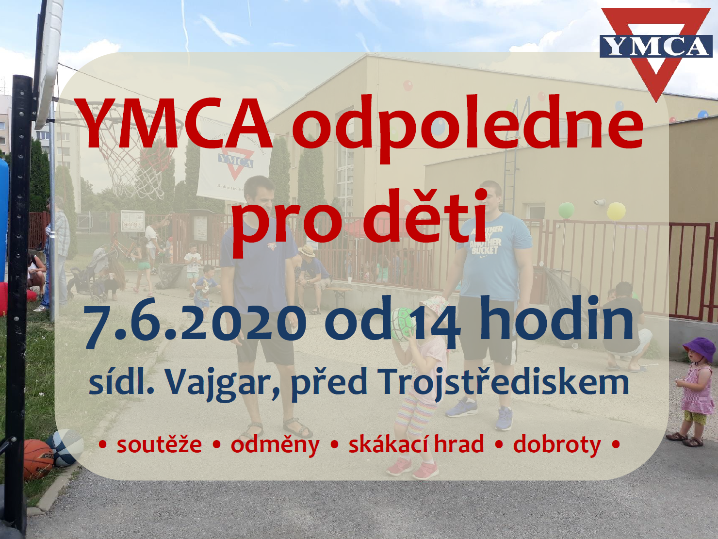 v neděli 7.6.2020 od 14 hodin – na sídlišti Vajgar před YMCA centrem (u Trojstřediska) – soutěže a hry pro děti – skákací hrad – odměny a dobroty… A taky oslava 176 let od vzniku YMCA!