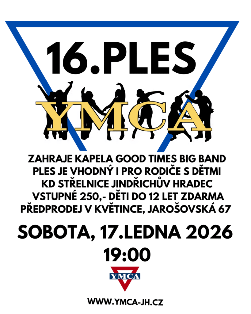 V sobotu 17. ledna od 19 hodin srdečně zveme do KD Střelnice na 16. ples YMCA JH. Ples je velmi vhodný i pro děti s rodiči – dětem bude program přizpůsoben do 21.30, těšit se můžou na bubenickou show. Připraven je i další pestrý program a bohatá tombola. Hrát bude skvělý Good Times big band. Vstupenky jsou v prodeji v Květinářství v Jarošovské ulici – vstupné je 250 korun, děti do 12 let mají vstup zdarma. Rezervace vstupenek je možná na tel. 602 162 458.