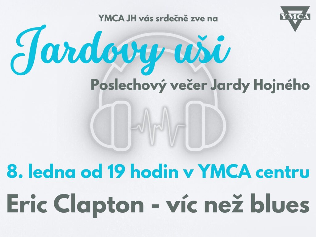 Ve čtvrtek 8. ledna od 19 hodin zveme do YMCA centra na další Jardovy uši – poslechový večer Jardy Hojného – na téma: *Eric Clapton – víc než blues*. Pouštěné skladby jsou uváděny krátkými zajímavými komentáři, které proměňují poslechový večer v neopakovatelný zážitek. Program je zhruba na 90 minut a zván je každý.
