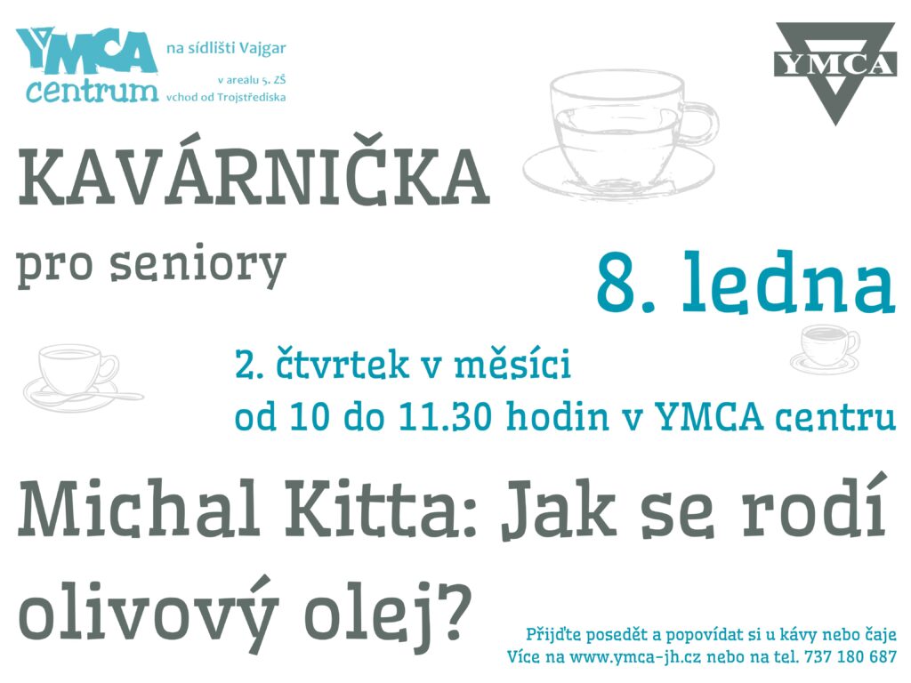 Ve čtvrtek 8. ledna od 10 hodin bude v YMCA centru další Kavárnička pro seniory. Michal Kitta chystá povídání na téma *Jak se rodí olivový olej?*, protože tuto výrobu několikrát zažil jako brigádník. Zaujalo vás téma? Srdečně zveme!
