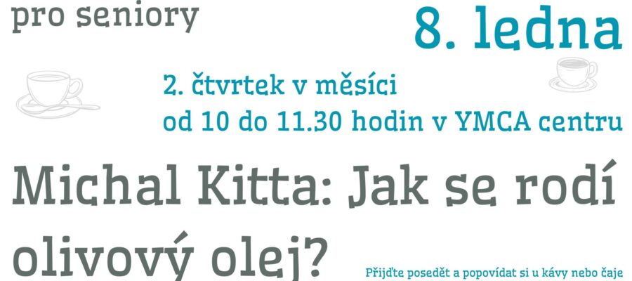Ve čtvrtek 8. ledna od 10 hodin bude v YMCA centru další Kavárnička pro seniory. Michal Kitta chystá povídání na téma *Jak se rodí olivový olej?*, protože tuto výrobu několikrát zažil jako brigádník. Zaujalo vás téma? Srdečně zveme!